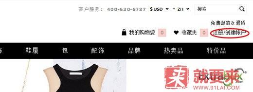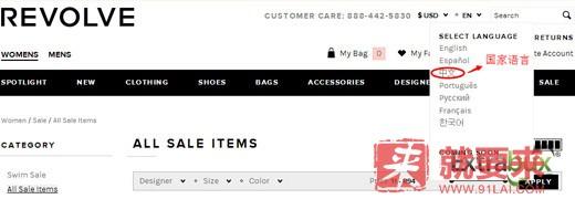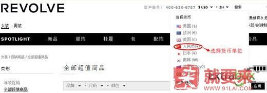 来到官网后在网页右上角可以先设置货币单位及国家语言,中国用户购物时更加方便。