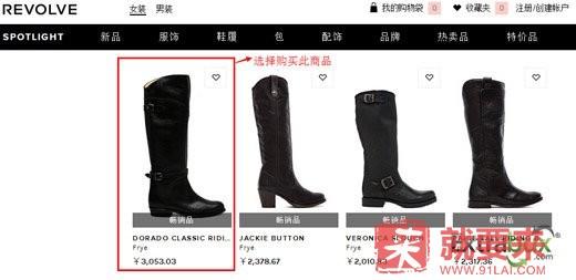 通过导航找到你想要购买的商品,下面以鞋为例子。