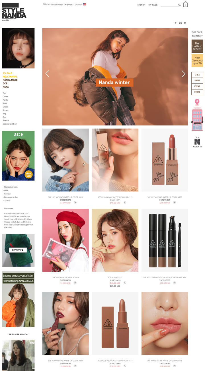 STYLENANDA韩国服饰时尚购物网站!主要销售女装,化妆品,配饰,秀出你的个性,亮出你的魅力,紧随时尚潮流!独特,性感,魅力,可爱,清纯,不一样的风格,不一样的你!作为女性购物的人气网站,NANDA持有3CE和KKXX品牌,深得用户的青睐,业界认同!