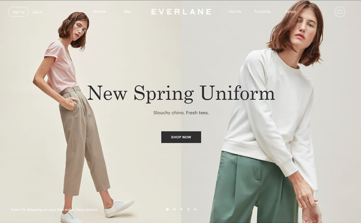 Everlane的网站设计简单清爽,连搜索功能都没有。在国内网站看到对Everlane的介绍,通常会附带着“极简”、“小众”等字样。但,“极简”并不等于“简单”,我发自内心的觉得它就是一个主打基本款的牌子。如果要我给他们一个定位,那就是“美国无印良品”,喜欢卖点情怀。但也是一个经常断货、不怎么打折的无印良品。