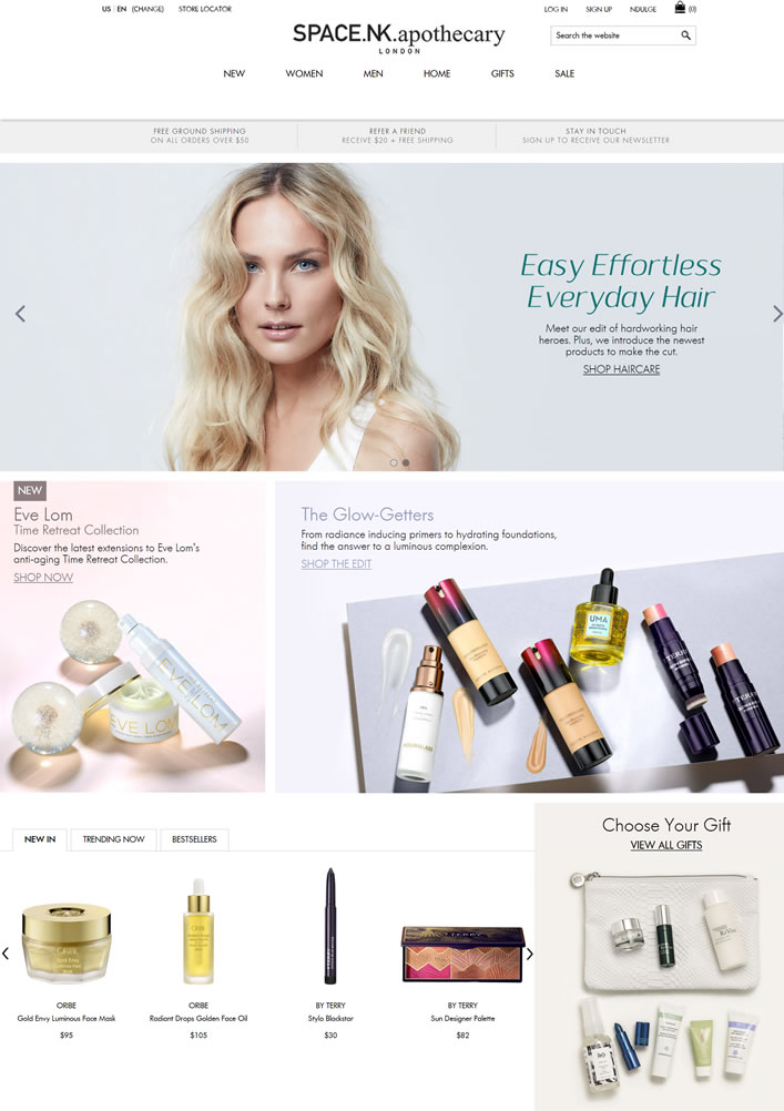 成立于1993年的英国Space.NK以“简而精”为宗旨,在美妆界中代表着典型的英式标致气度。不同于大众化的美妆网站,Space.NK以高端产品为主,包括Kiehls契尔氏、法国超火药妆品牌Caudalie、无瑕粉妆Laura Mercier等等。许多专业人士都是他们的忠实粉丝。