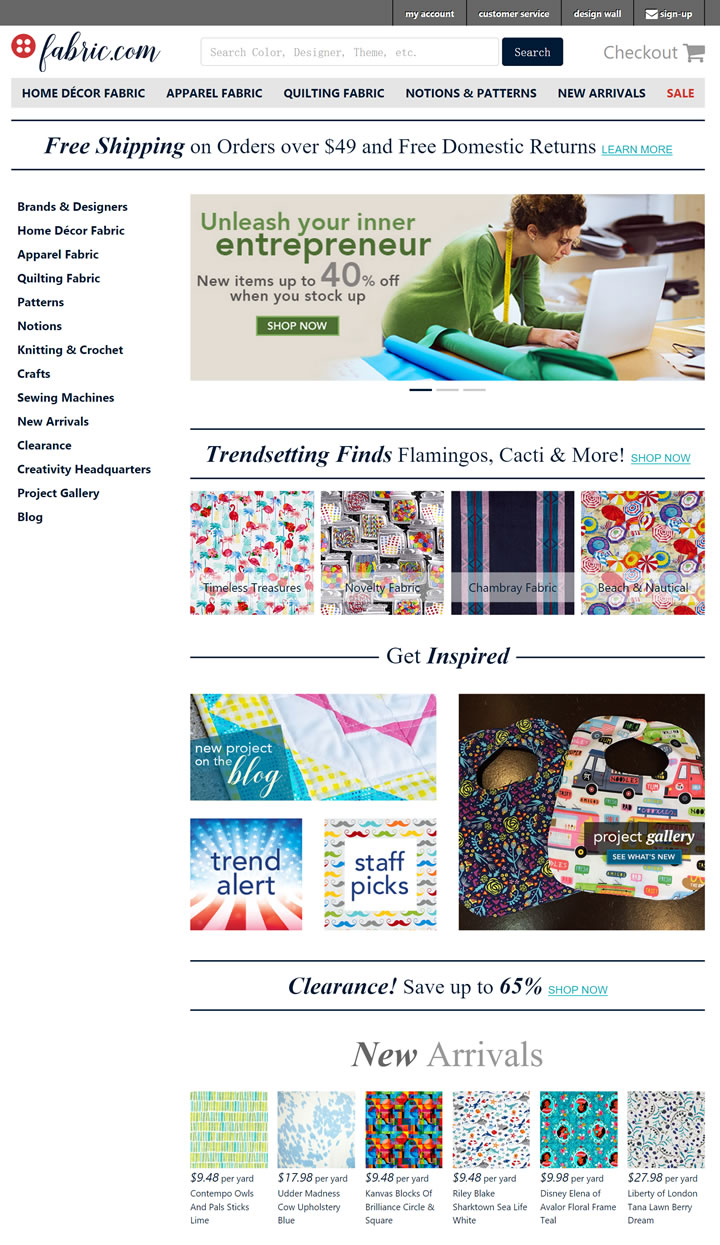 Fabric是全球一家领先的主要以销售各类面料、纺织品为主的专营店。它提供的面料款式主要包括:绗缝面料、家居装饰面料、时尚面料及其它图案等。