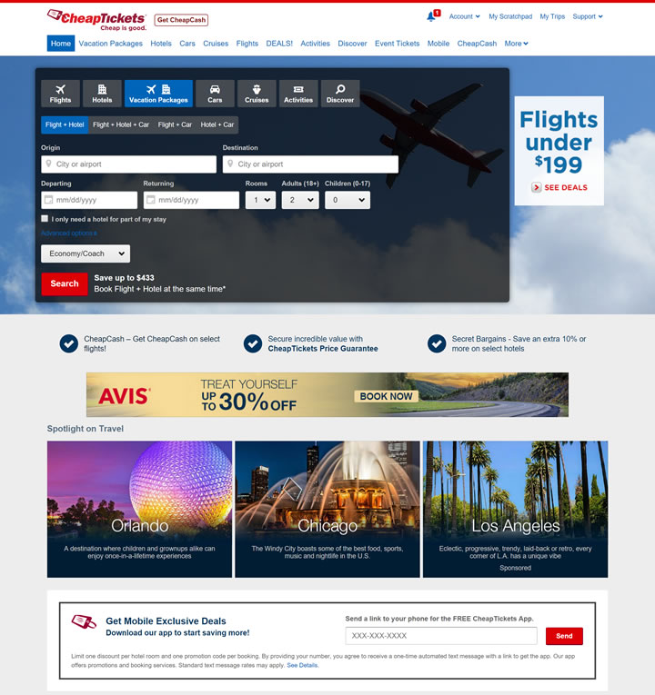 CheapTickets是美国最便宜的旅游网站之一。我们的客户正在寻找便宜的旅行,他们使用CheapTickets搜索和预订广泛的旅游产品和服务,包括机票、酒店、汽车租赁、游轮、旅游保险和目的地服务,来自全球供应商。