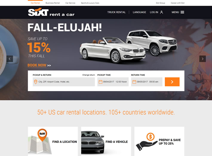 50多个美国汽车租赁场所。Sixt在1912年成立于德国慕尼黑,如今已成为世界知名的租车公司,并且仍在稳定扩张中。Sixt在全球超过105个国家均有开展租车业务,目前已拥有4000个门店。无论您是私人旅游或者商务出行,Sixt都能给您提供专业的服务。