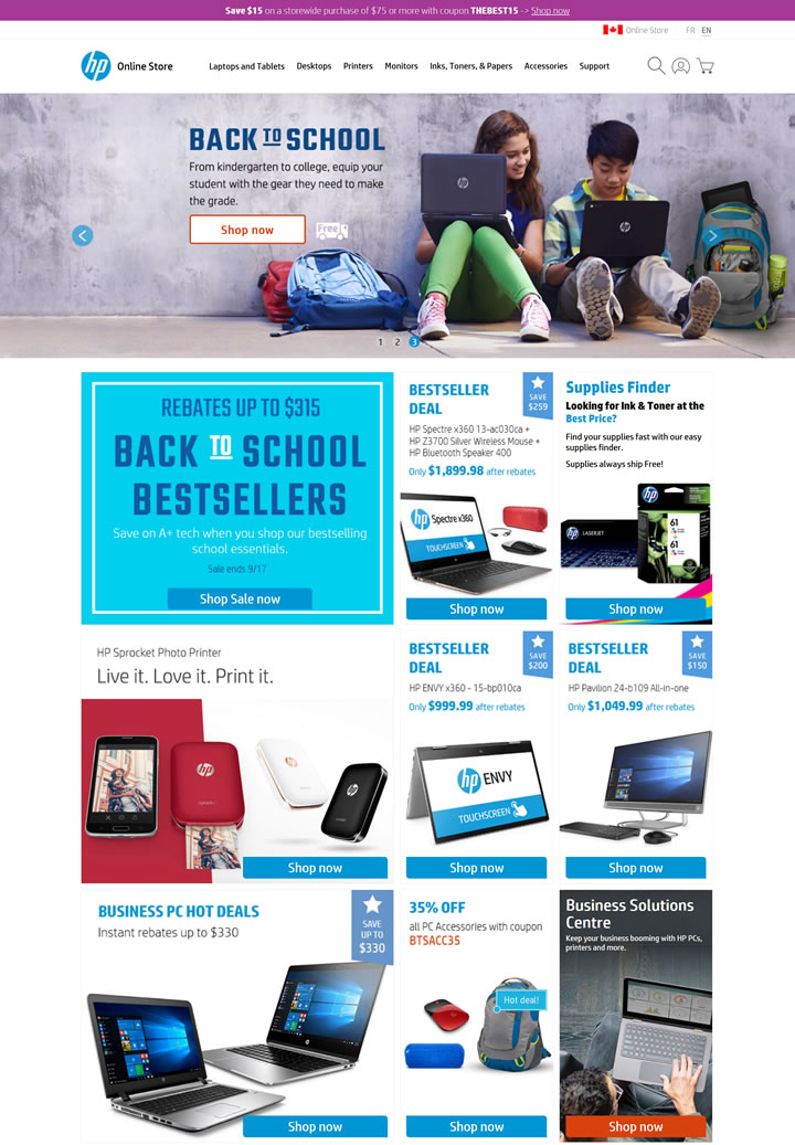 惠普加拿大在线商店,购买惠普笔记本电脑、平板电脑、台式机、打印机、显示器、墨水、墨粉、纸张和配件。