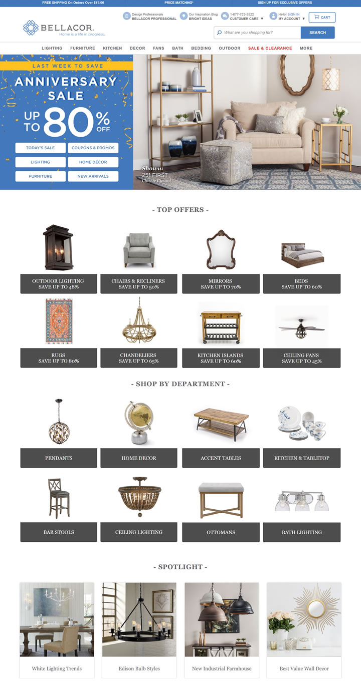 Bellacor提供照明、家具、厨房用品、家居装饰、吊扇、卫浴、床上用品等。