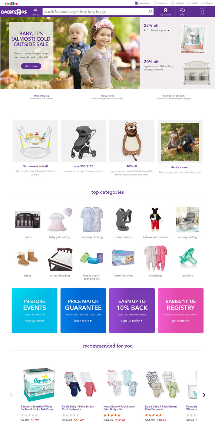 Babies”R”Us是婴儿车、汽车座椅、婴儿床、床上用品、尿布等领先零售商。