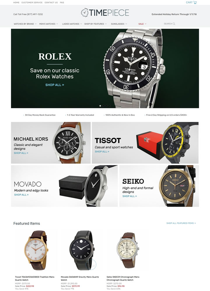 美国著名手表网站之一,销售包括Hamilton、Daniel Wellington、Omega,Seiko,Citizen,Movado,Gucci等知名品牌的手表,提供有竞争力的价格和先进的服务,在美国有着良好的口碑。