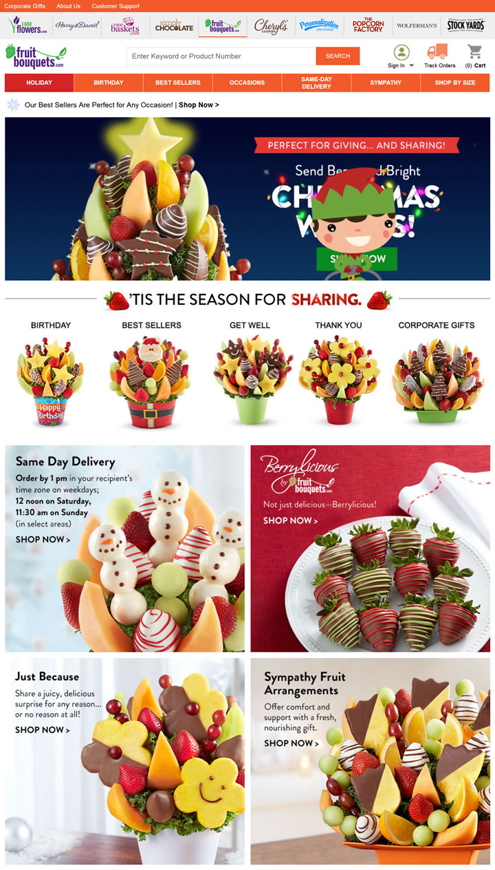 为各种场合送上美味的水果花束、水果篮子、巧克力草莓和更多。