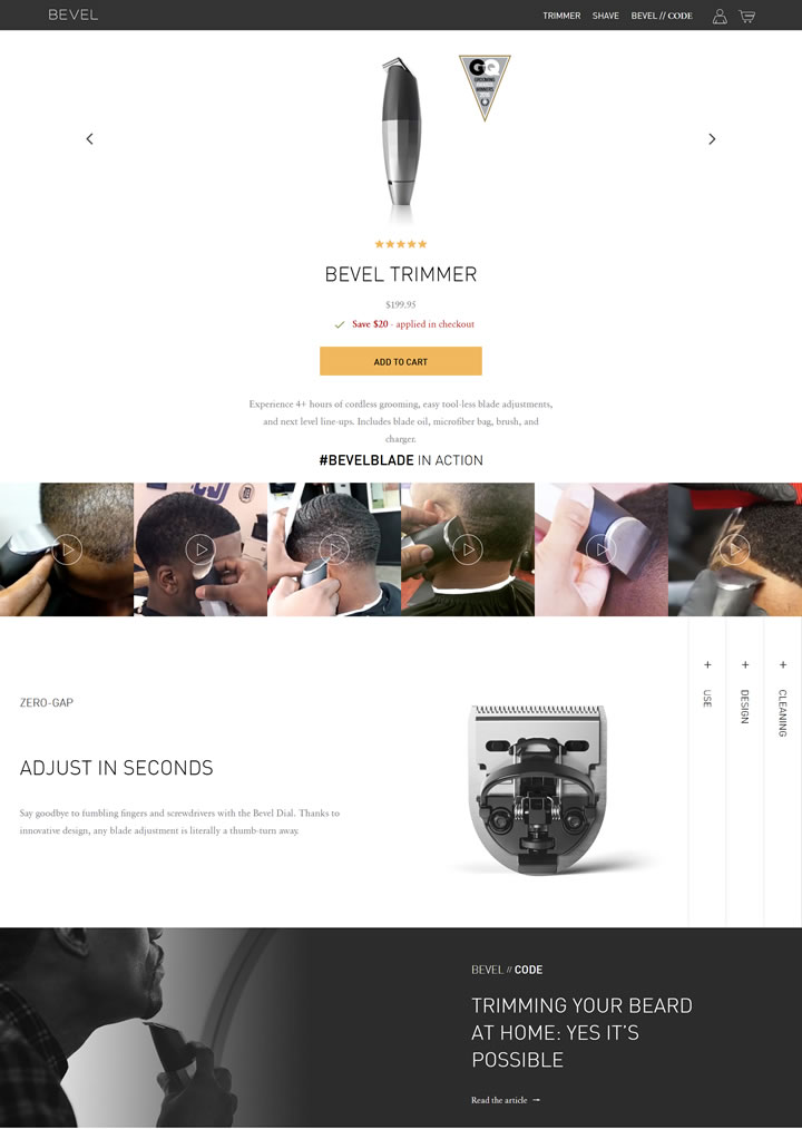 Bevel是第一个专为头发卷曲的男士设计的端对端剃须系统,是地球上最先进的胡子和头发修剪器,体验4个多小时的无绳修饰。