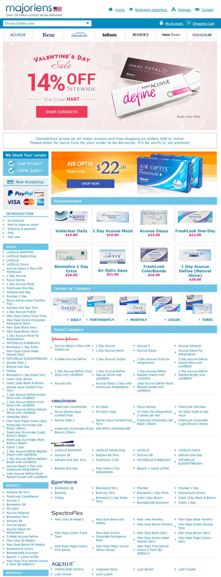 Majorlens.com以最低的价格提供品牌隐形眼镜,如Acuvue、Freshlook和Air Optix。
