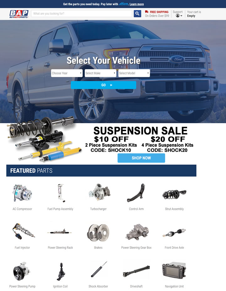 Buy Auto Parts是您汽车零件批发、汽车零件、卡车零件、OEM汽车零件以及高性能零件和配件的理想家园。我们公司总部位于加利福尼亚州。我们的目标是使购买汽车零件变得容易。我们在创建自己的汽车零件目录方面已经进行了25年的艰苦研究。通过这个过程,我们能够使汽车零件的搜索变得简单。