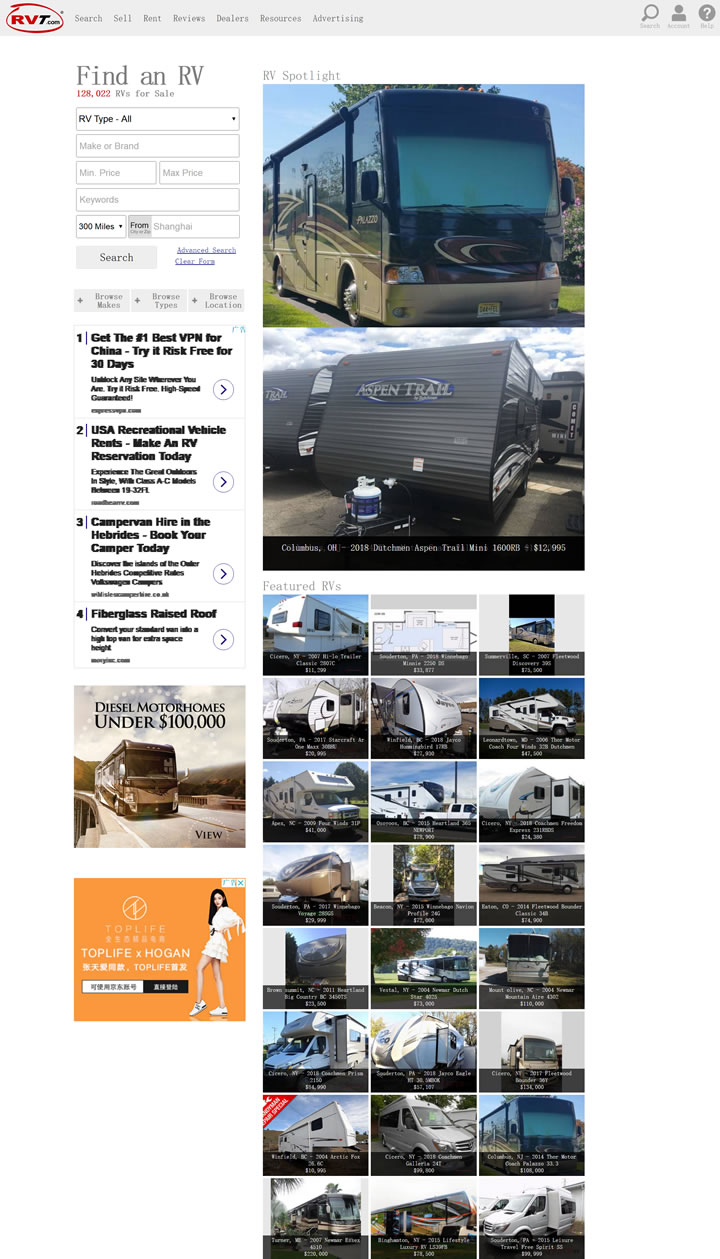 RVT.com是北美地区房车交易分类的主要来源 – 寻找或出售新的或二手房车、旅行拖车、野营车或任何类型房车的最佳场所。