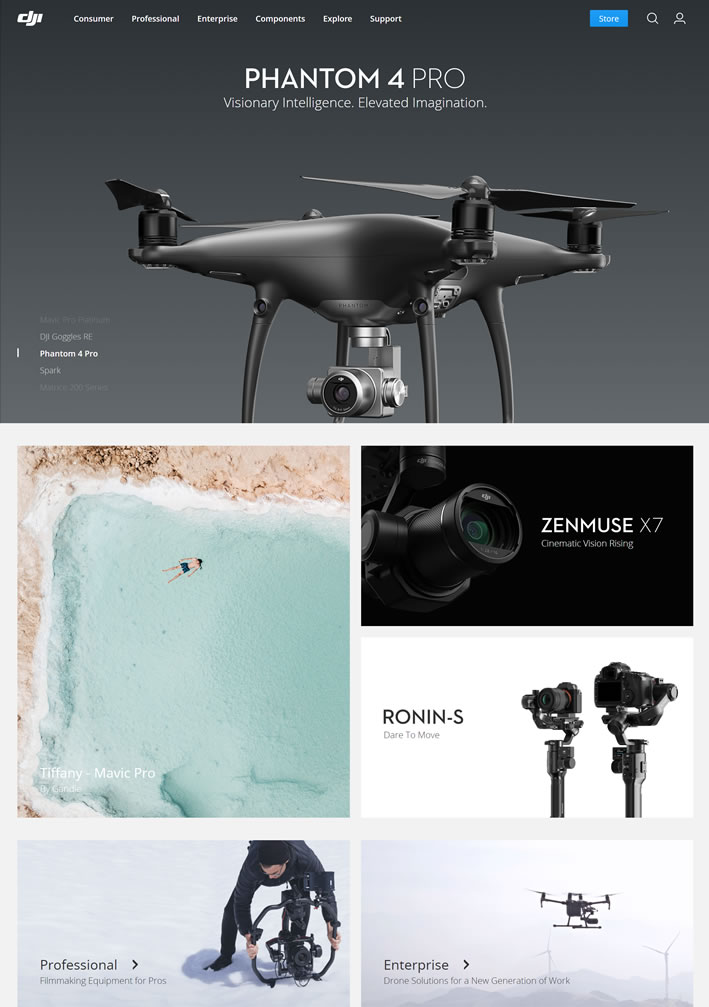 DJI是消费类无人机领域的领导者,拥有超过70%的全球市场份额。Mavic Phantom、Inspire、OSMO等都是DJI明星产品。