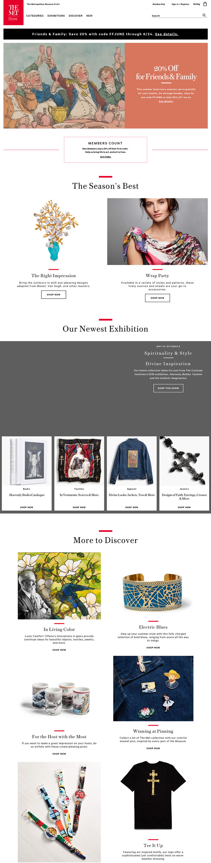 发现数百种独特的博物馆礼品和复制品,包括珠宝、雕塑、服装、展览目录、墙面艺术品、文具等。大都会艺术博物馆(The Metropolitan Museum of Art)是美国最大的艺术博物馆,也是世界著名博物馆,位于美国纽约第五大道的82号大街。该博物馆占地面积为13万平方米,它是与英国伦敦的大英博物馆、法国巴黎的卢浮宫、俄罗斯圣彼得堡的艾尔米塔什博物馆齐名的世界四大博物馆之一。截至目前,该馆目前共收藏有300万件展品。现在是世界上首屈一指的大型博物馆。