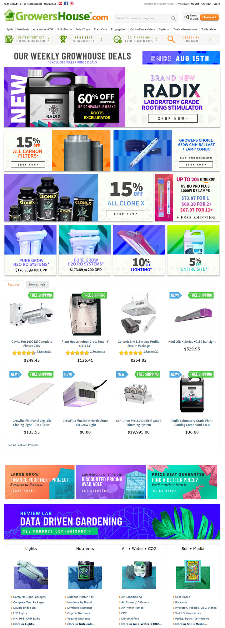 GrowersHouse.com是美国最大的在线水培用品商店。通过GrowersHouse.com在线水培用品商店,您可以运送到世界上几乎任何国家,并使用比任何其他水培设备提供商更多的支付选项。我们的在线水培、温室和室内种植设备目录拥有超过16000种产品,并且每周都在增长。