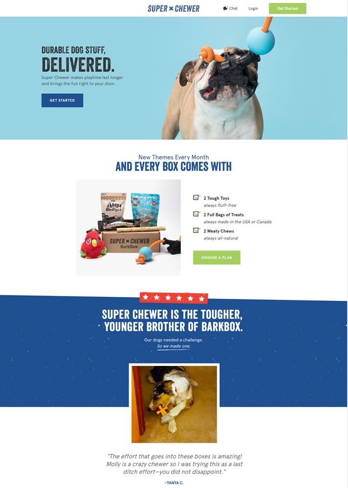 Super Chewer提供狗狗玩具、零食和咀嚼物的月度送货服务,送到您家门口。为您的幼犬提供最具挑战性的玩具破坏!