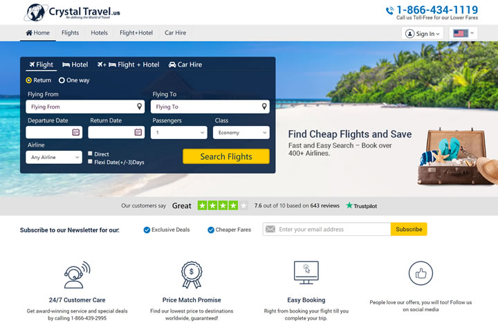 Crystal Travel是一家拥有31年历史的在线旅行社,专门提供飞往美国和世界各地顶级旅游目的地的廉价航班和折扣机票。