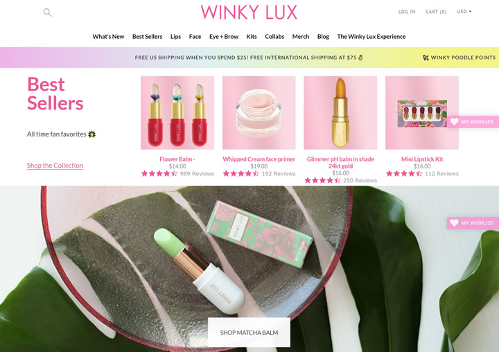 Winky Lux是美国的一个快时尚彩妆品牌,以少女心和浪漫清新的包装设计而出名,最有名的产品是透明花瓣润唇膏,Winky Lux每45天上新一次,这也是它们家的特色之一。