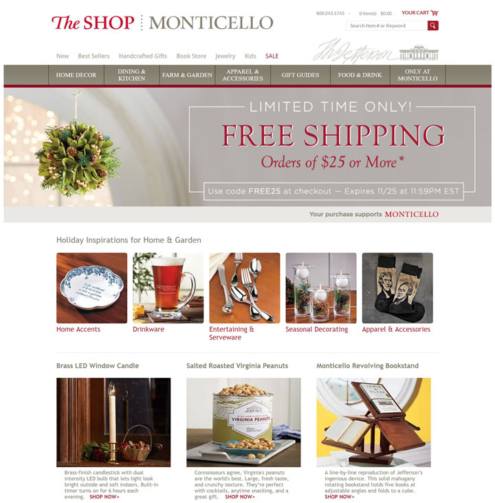 Monticello Shop,灵感来自Thomas Jefferson。 探索独特的家具、家居装饰、花园、种子、植物、书籍等。
