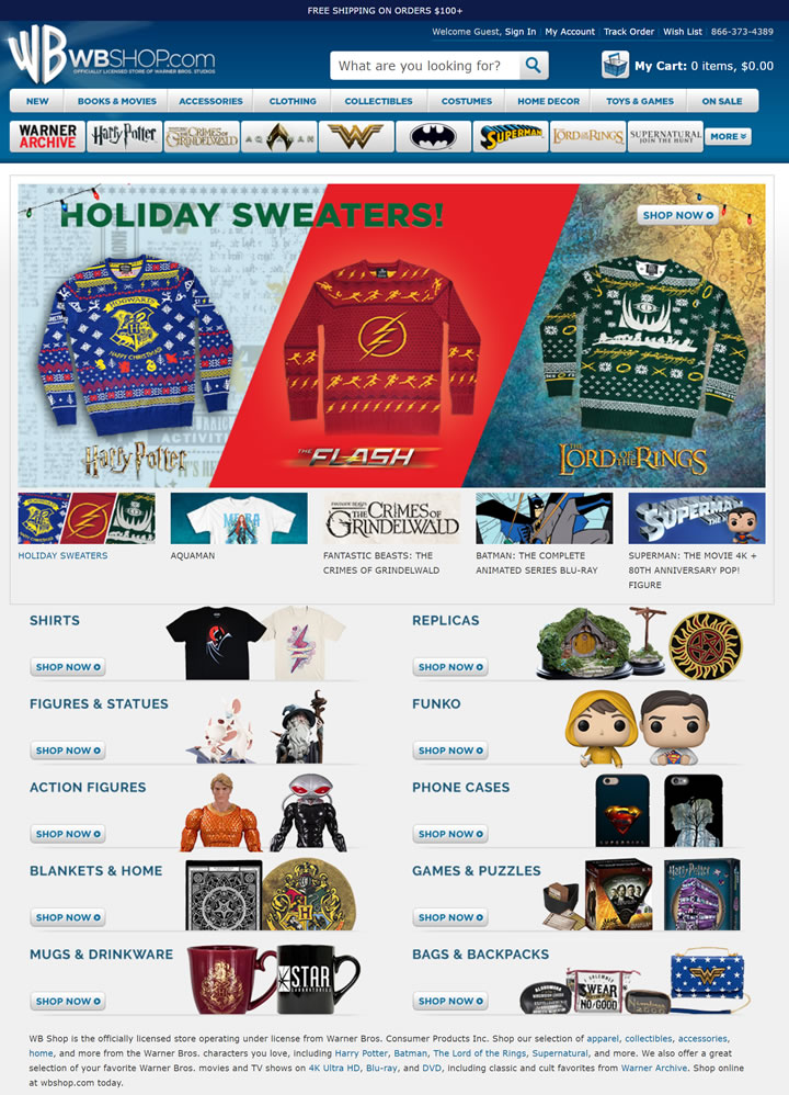 WB Shop是官方授权的商店,由华纳兄弟消费品公司授权经营。购买我们精选的服装、收藏品、配饰、家居等,来自您喜爱的华纳兄弟角色,包括哈利波特、蝙蝠侠、指环王、邪恶力量等。我们还提供大量您喜爱的华纳兄弟电影和4K超高清、蓝光和DVD电视节目,包括华纳档案馆的经典和热门收藏。
