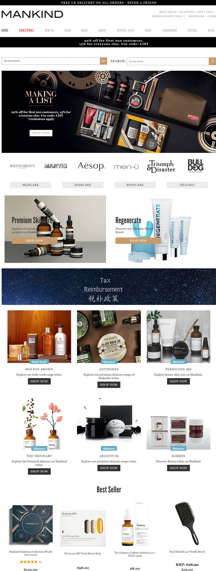 Mankind是英国一家领先的男士美容护发用品公司,为广大男性消费者精选最新最佳的护肤、护发、修脸用品,并为其创造简单,快速,有趣的购物体验。