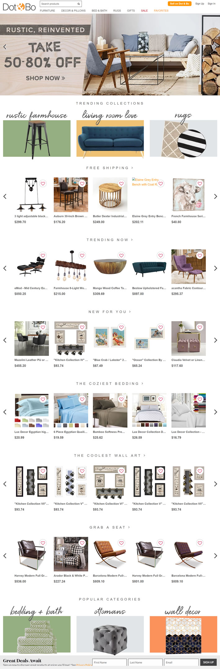 为你家里的每一个房间购买现代家具和家居装饰,风格从中世纪到工业到波西米亚和更多。全部高达60%的折扣。