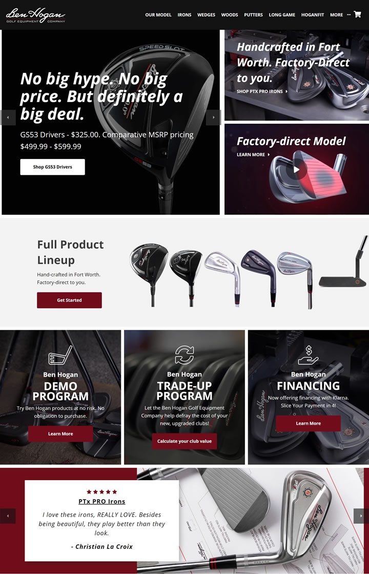Ben Hogan Golf是唯一一家在我们自己的网站上直接销售、没有零售合作伙伴的高尔夫设备公司。我们提供高质量的高尔夫设备(在美国职业高尔夫球协会巡回赛和冠军巡回赛上进行),并以工厂直接定价。