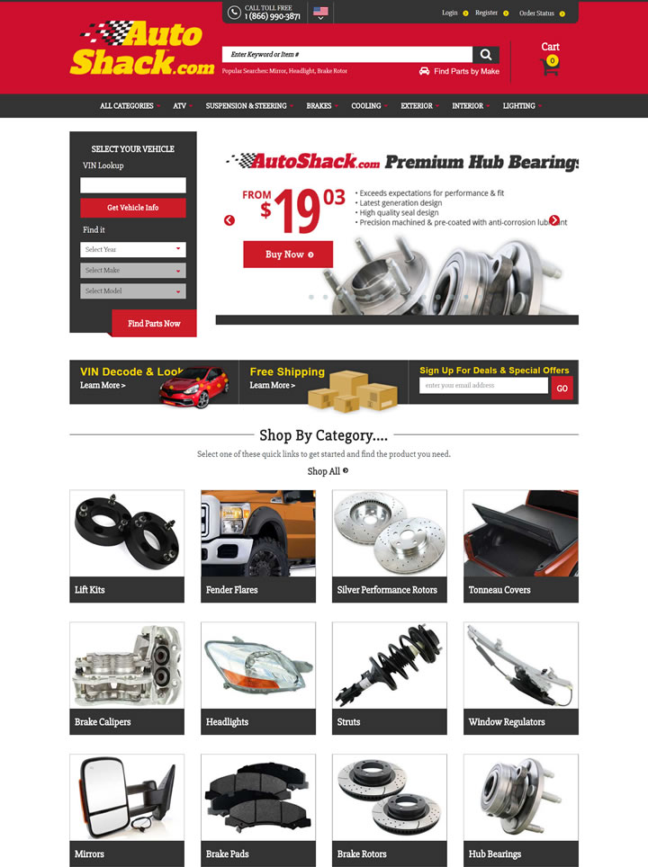 AutoShack.com是一家领先的汽车零部件批发分销专家。我们所有的产品都储存在我们最先进的10万平方英尺的仓库里,这使我们能够为我们的客户提供批发直接定价。通过消除中间商,我们的高质量零件具有显著的高价值。我们的仓库拥有超过一百万个汽车零件,包括:制动零件、轮毂轴承、氧气传感器、燃油泵、散热器、窗户调节器、雨刮片、底盘零件、完整的支柱组件、性能部件等。