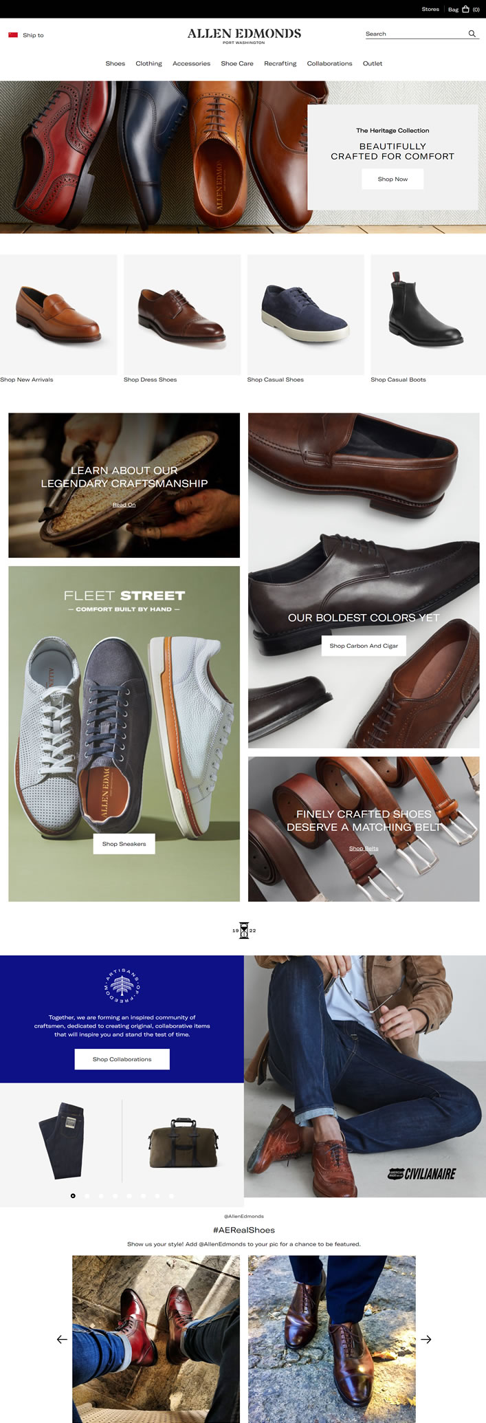 Allen Edmonds Shoe Corporation成立于1922年,是一家美国优质男士鞋类及配饰制造商。自1922年以来,我们一直在创造永恒的定制男士正装鞋和休闲鞋。我们的鞋子只使用优质皮革,并通过212步工艺手工制作。
