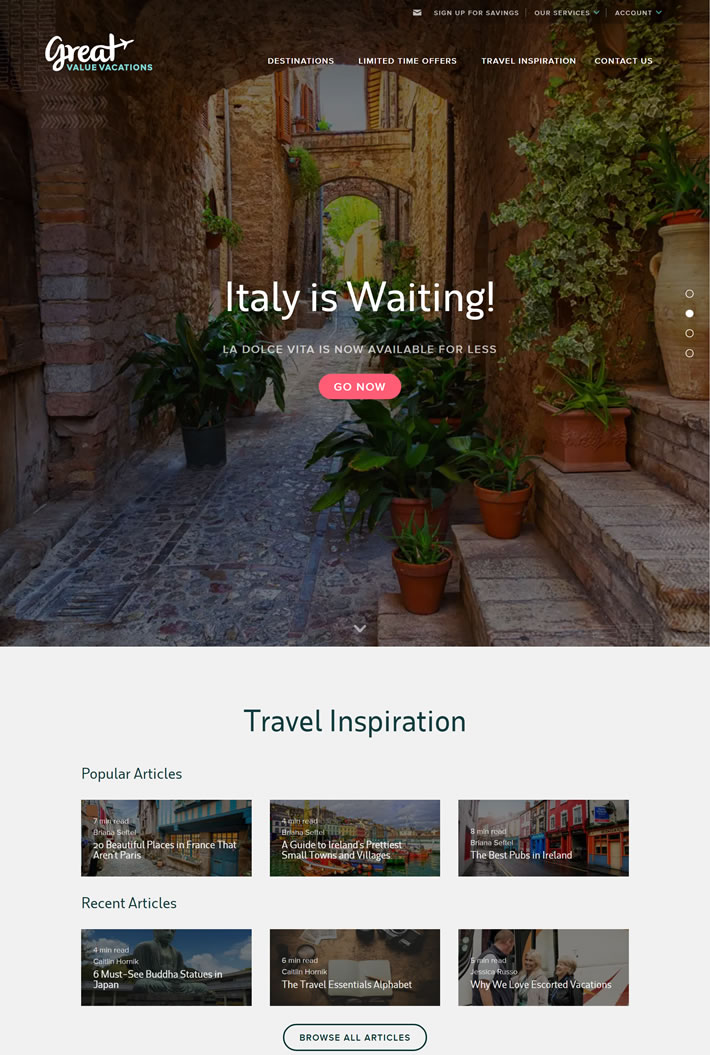 以爱尔兰、意大利、希腊和世界其他地区为主题,提供专业设计的度假套餐,价格合理。