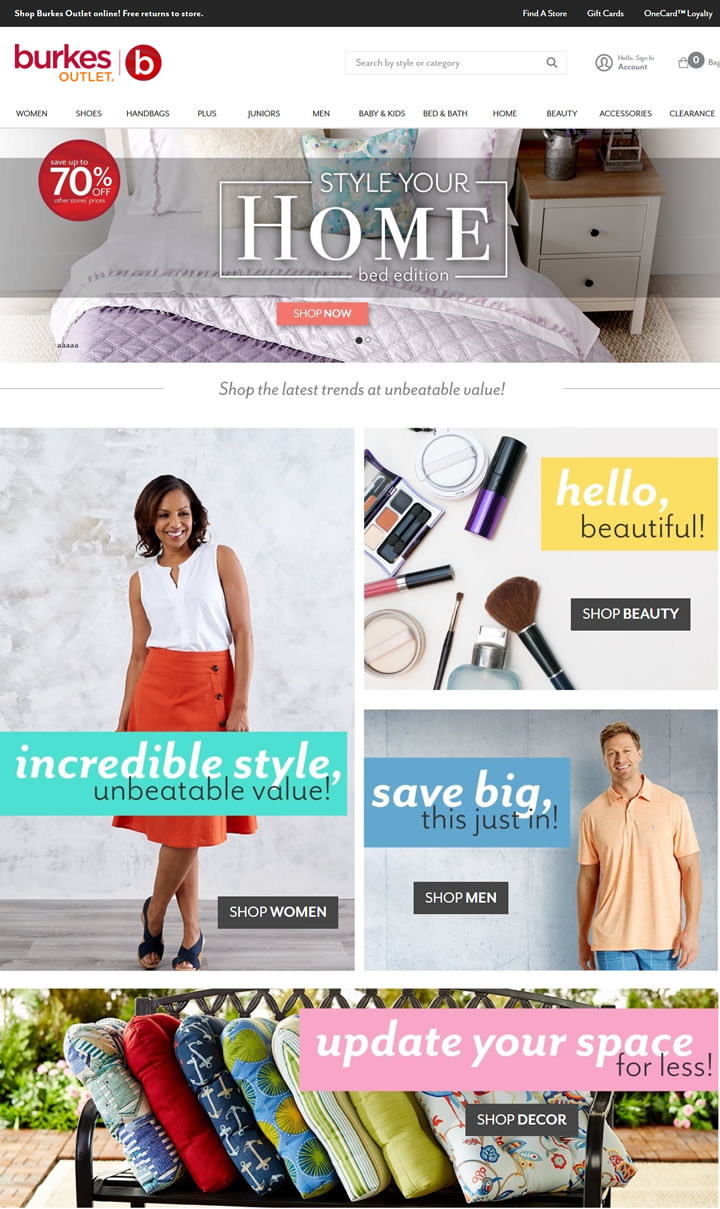 Burkes Outlet是一家私人控股公司,拥有丰富的传统,由创始家族及其员工所拥有。 Beall’s, Inc.是Burkes Outlet Stores, Inc.的母公司。该公司经营着500多家零售店。自1915年开始以来,Bealls已发展成为佛罗里达州的主要雇主,并为其服务的社区提供了宝贵的资产。