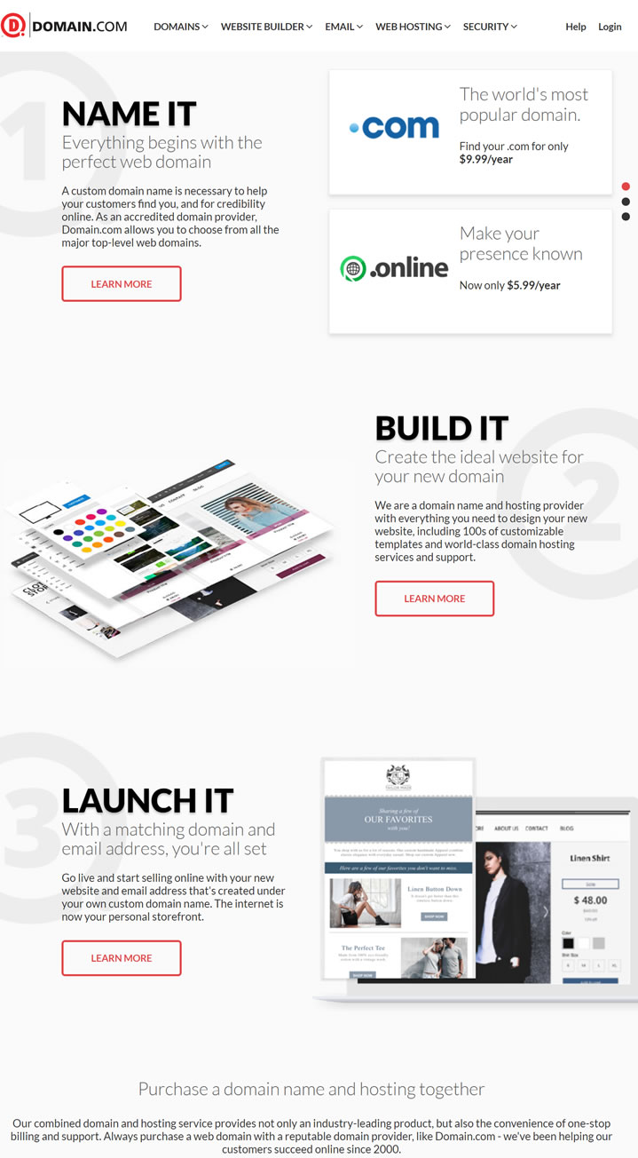 我们的组合域名和托管服务不仅提供行业领先的产品,还提供一站式计费和支持的便利。始终使用像Domain.com这样信誉良好的域名提供商购买网络域名 – 自2000年以来,我们一直在帮助客户在线取得成功。