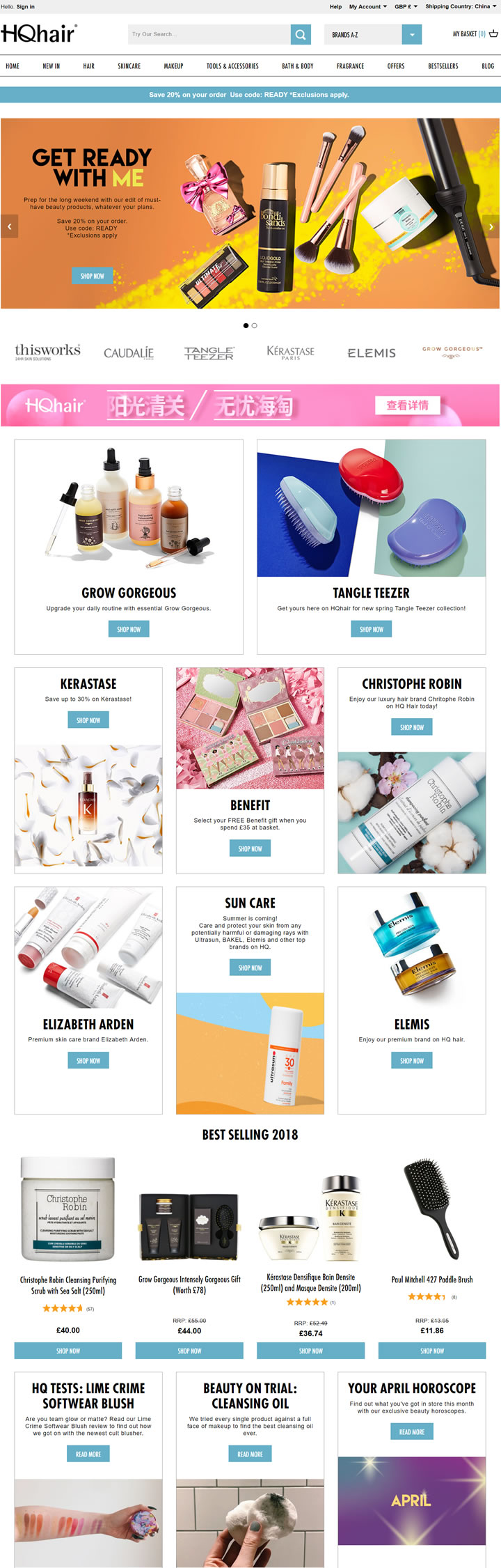 HQhair是英国著名网上零售公司The Hut集团旗下的美容护理网站。它家的产品非常丰富,热门的商品都有,例如:Nars、Urban Decay、埃及魔法膏、Moroccanoil、GlamGlow发光面膜、Caudalie、Magnifibres假睫毛、RapidLash睫毛增长液、Elemis、OPI、欧舒丹和伊丽莎白雅顿等。