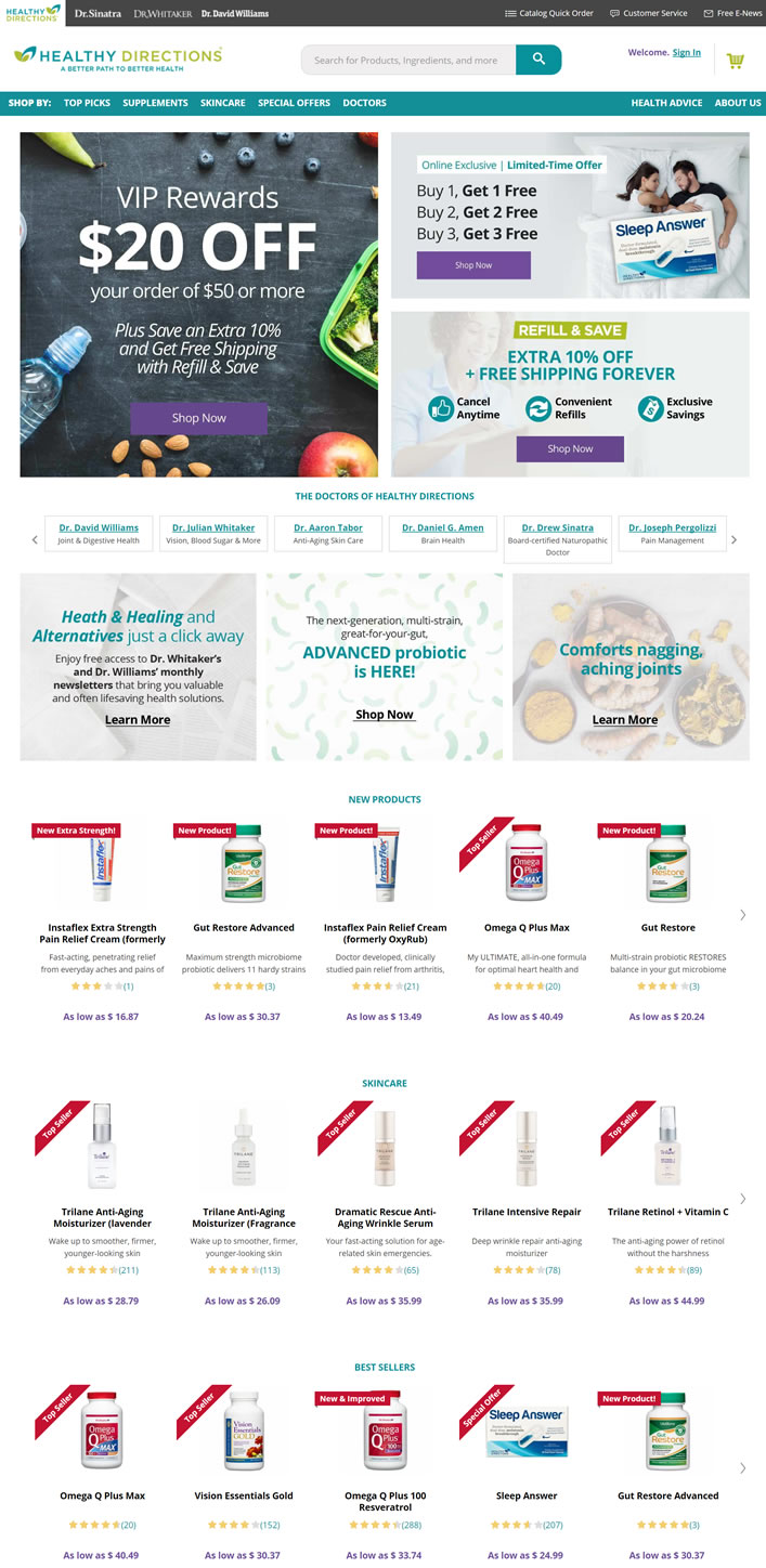 Healthy Directions是卓越医生配方的营养补充剂、产品和专家自然健康指南的第一供应商。成立于1976年,提供超过500种产品,包括我们广受欢迎的专利omega Q plus、消化益生菌、天然护肤产品、止痛产品等。