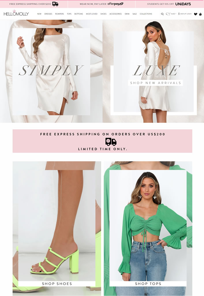 Hello Molly是一家领先的在线时尚精品店,拥有充满创意和灵感的女装,配有最新款时尚配饰。