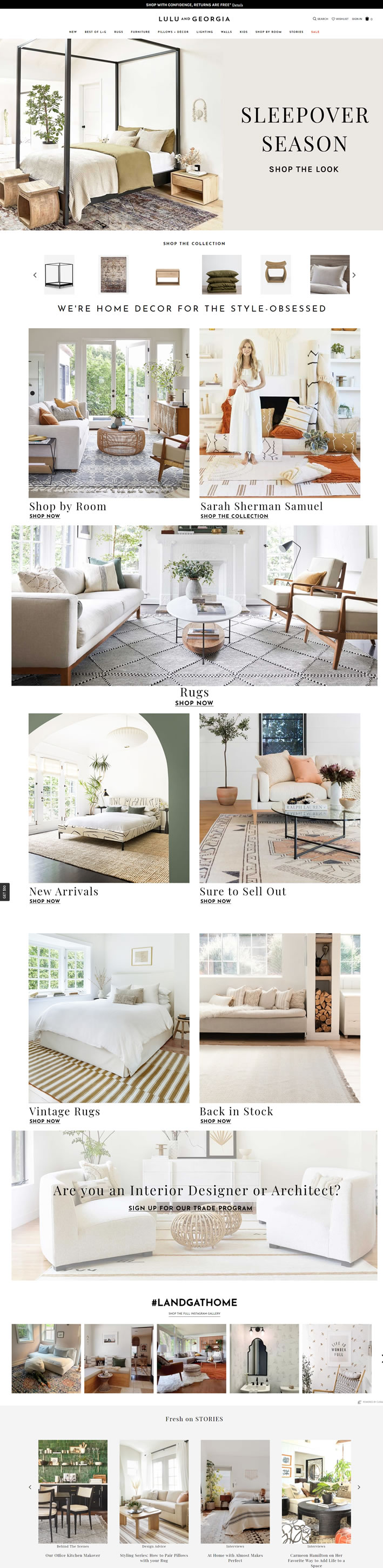 Lulu & Georgia是一家家居装饰网上商店,提供各种地毯、枕头、墙面装饰、灯饰和家具,专为年轻、精致和引领潮流的现代女性而设。