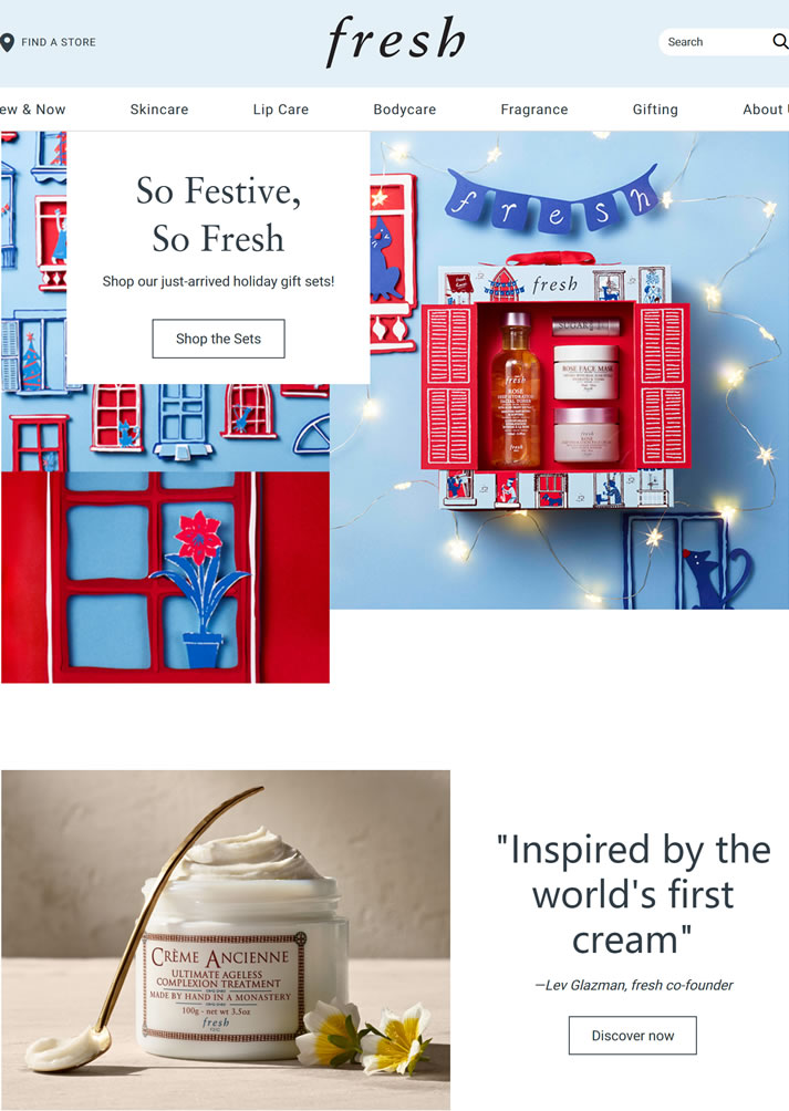 fresh是法国LVMH集团旗下的高端护肤奢侈品牌,创始人为Lev Glazman,诞生于美国,品牌旗下拥有360多家门店。带有浓厚人文色彩的fresh相信,人类几百年的文化智慧是美颜的宝贵遗产。fresh把世界各地民族流传的古老美容秘方,结合现代人的喜好习惯,重新调配成适合日常使用的护肤系列。比如:玫瑰,红茶,大豆,澄糖等。
