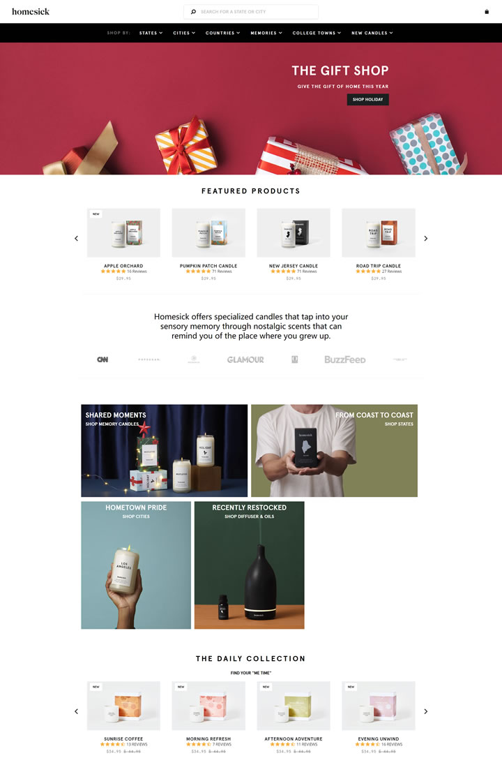 Homesick提供专门的蜡烛,通过怀旧的气味打入您的感官记忆,使您想起您长大的地方。