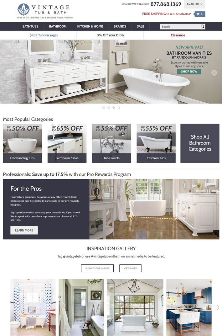 25多年来,Vintage Tub&Bath一直是您厨房和浴室设备的首选来源。我们提供各种各样的的浴室和厨房设备、水槽、厨房和浴室水龙头、配件等。