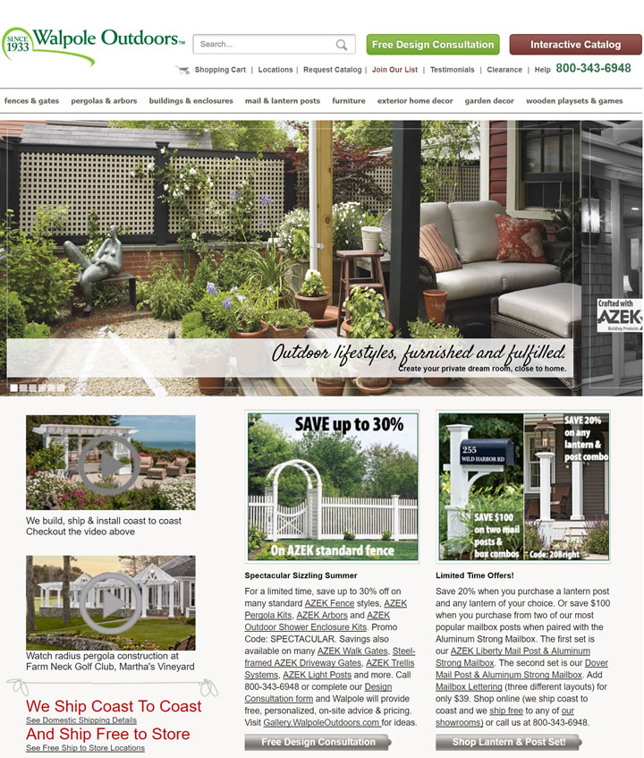 自1933年以来,Walpole Outdoors的木栅栏一直是房主的骄傲。查看我们选择的乙烯基围栏、凉棚架、乔木、大门等。