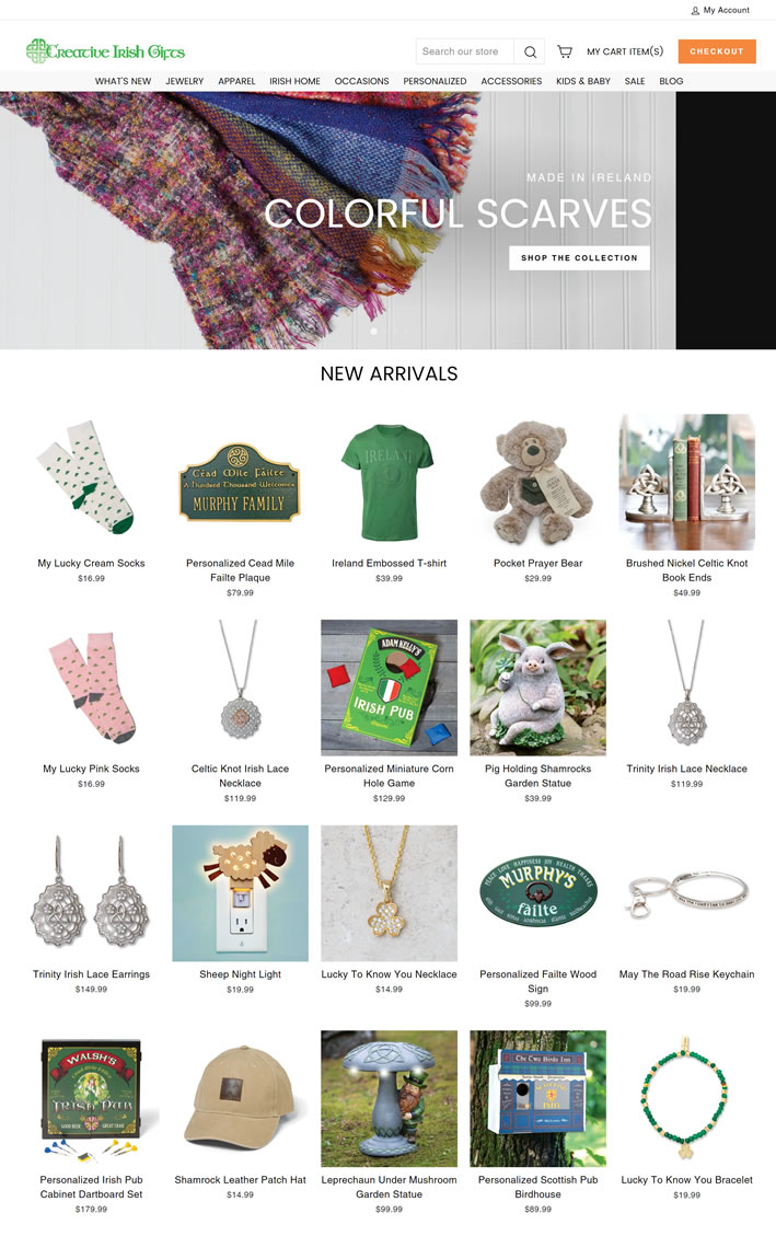 Creative Irish Gifts是互联网上的一家顶级爱尔兰商店,出售以爱尔兰为主题的珠宝、服饰、独特礼物以及更多其他物品。这家零售商的货源从手工作坊到品牌供应商,其大部分库存来自苏格兰、威尔士、英格兰和欧洲大陆。