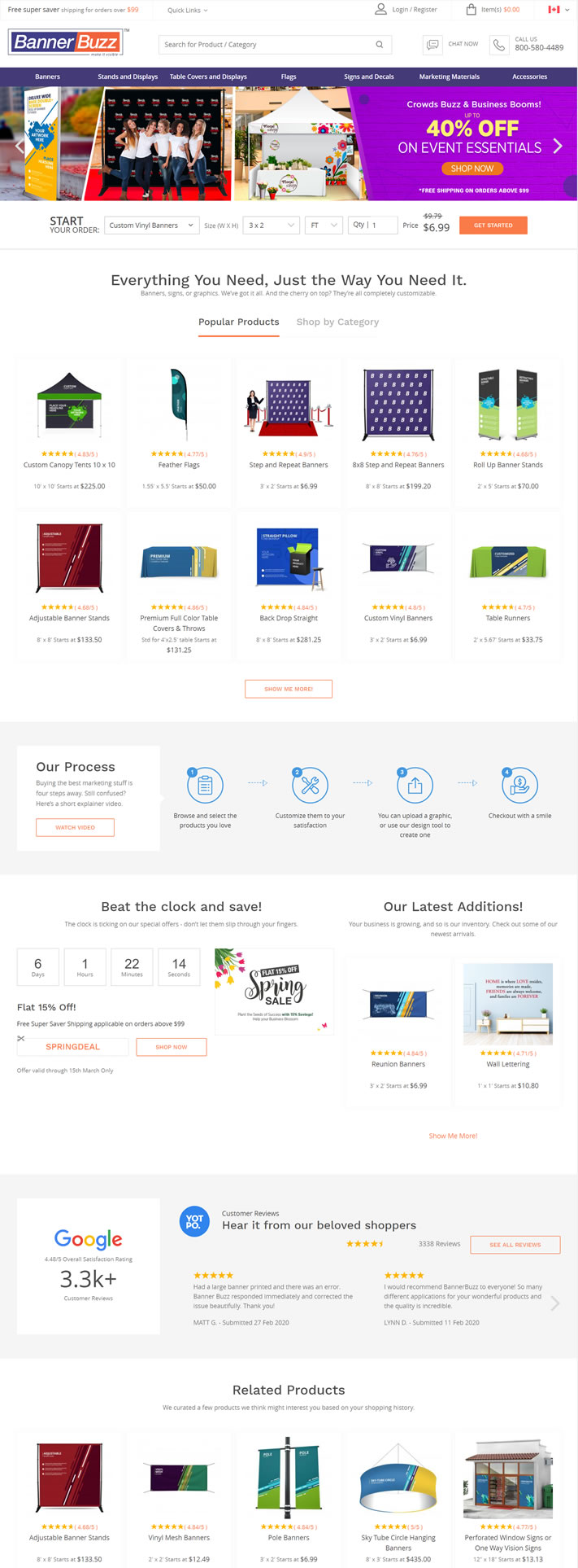 BannerBuzz CA在加拿大的网上销售定制的横幅和标牌相关产品。我们提供最低的价格、快速的上传速度和简单的订购过程。我们的价格低至6.99美元;除了低廉的价格外,我们还提供季节性促销和折扣,以帮助您将努力转化为销售。