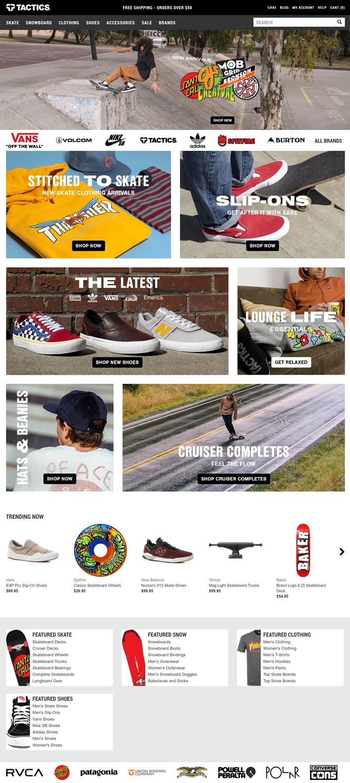 最大的滑板和滑雪板装备、滑板鞋和衣服选择。您最喜欢的所有品牌,以及每次购买均可享受免费送货。