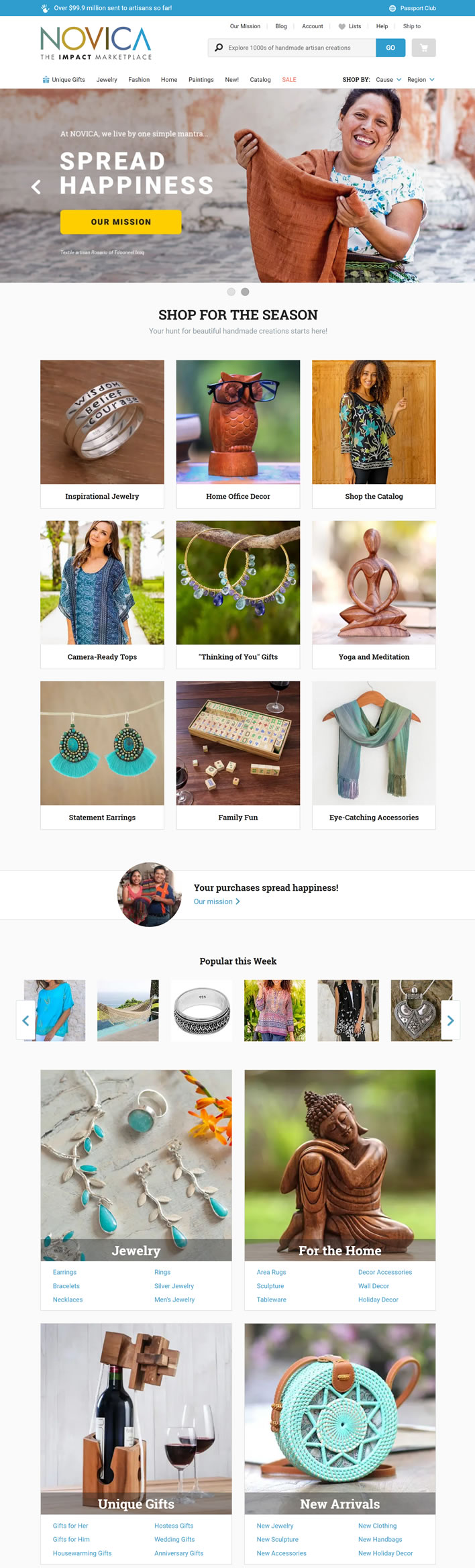 Novica将您与世界各地2000多位杰出的大师艺术家联合起来。了解他们的生活,探索他们迷人的文化,并从30000多种手工艺术品中进行选择。