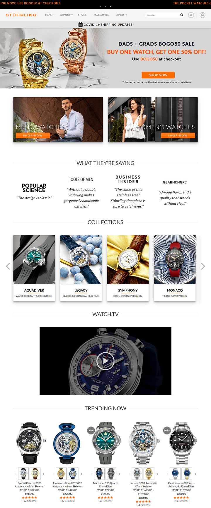 Stührling手表官方网站:男女高品质时尚手表的领先零售商