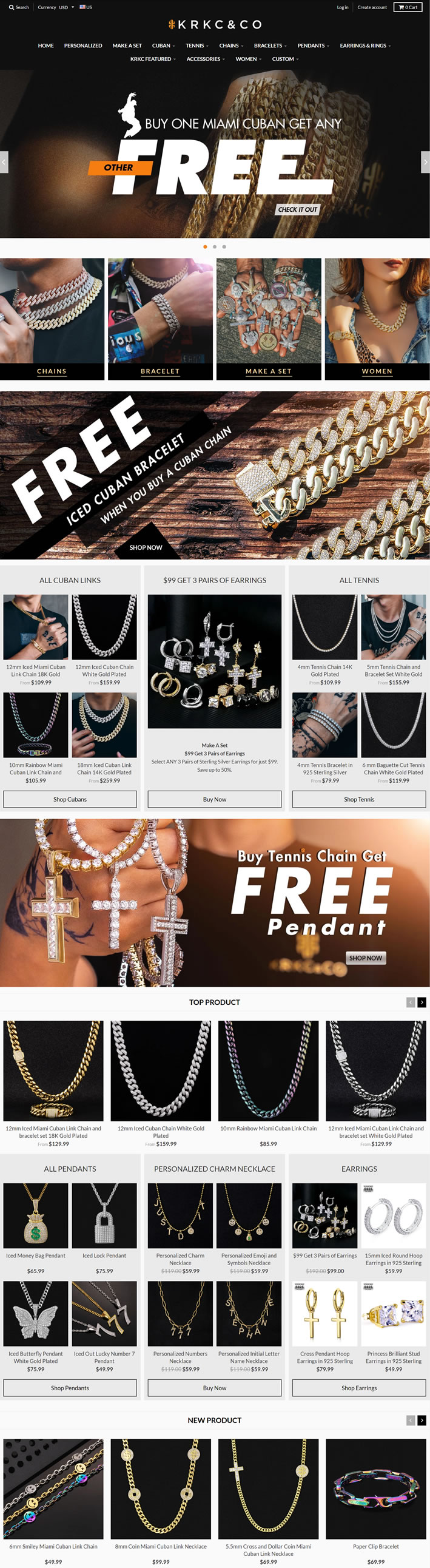 KRKC&CO是一个全球品牌,专门从事独特和创新的男女嘻哈/都市/街头珠宝,成本非常低廉。我们有古巴、网球、吊坠、耳环和戒指、定制珠宝以及珍贵的珠宝礼物送给他/她。