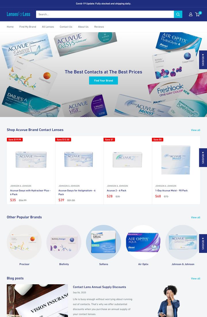 LensesForLess自1998年以来一直在订购隐形眼镜,并致力于以更实惠的价格为您提供从医生办公室获得的相同隐形眼镜。