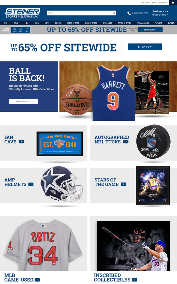 Steiner Sports收藏品和纪念品。Steiner Sports是正宗手工签名收藏品的主要生产商,他花了32年时间与2000多名运动员建立了关系,与主要体育联盟建立了国家关系,并与体育界最好的团队建立了合作关系。