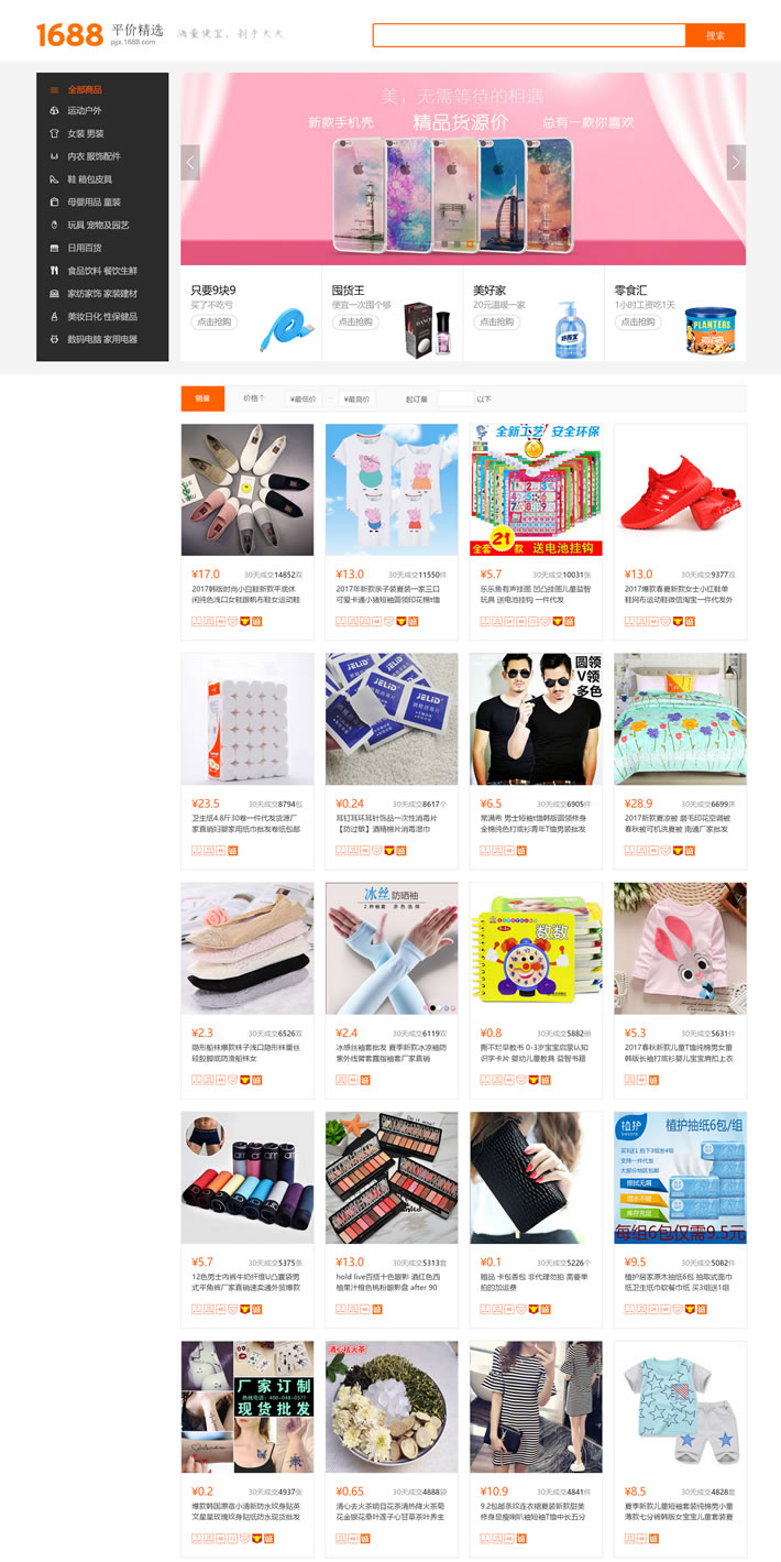 1688平价精选商城移动端:https://pjjx.1688.com/tkmall/wap/index.html